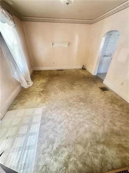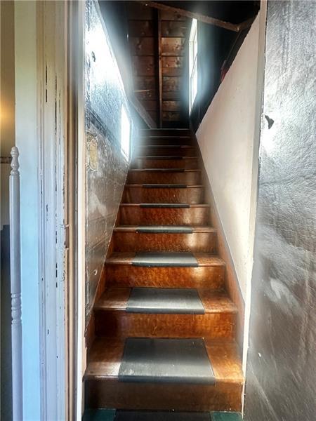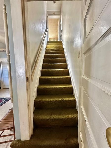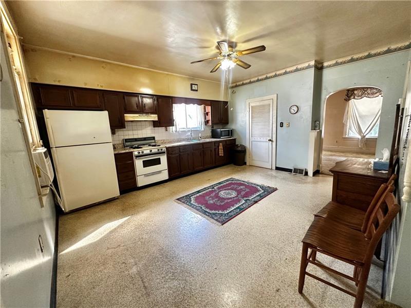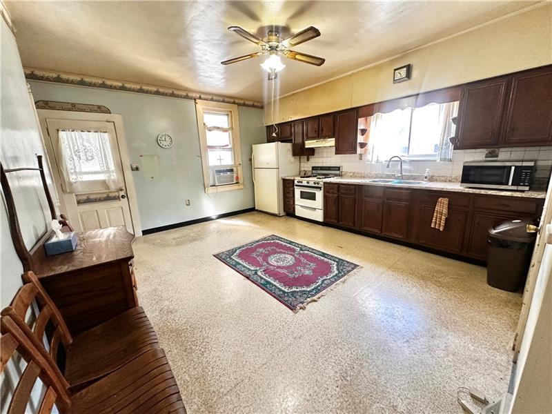 Investors wanted! This 2 bedroom 1 full bath home is located in the city of Latrobe. As you approach the property, you will see that the vinyl siding has been updated and that the roof appears to have a newer composition roof.  A covered front porch greets you. You enter into the family room with 2 large windows, ceiling light and the orig high baseboard molding.  The large eat in kitchen is waiting for a redo but the size of this room will give you many opportunities! The full bath is on the main level.  A back door off of the kitchen leads to another covered porch leading to a level backyard with no homes behind  it & a 1 car detached garage. The 2nd level has 2 large bedrooms. The 3rd floor is an open space with lots of room for storage or whatever you can dream up. The basement has the laundry area (W&D included) with newer hot water tank and furnace. Lots of room for storage. Long driveway for additional off street parking. Cash or Conventional buyers only. SOLD IN AS IS CONDITION