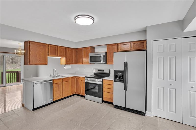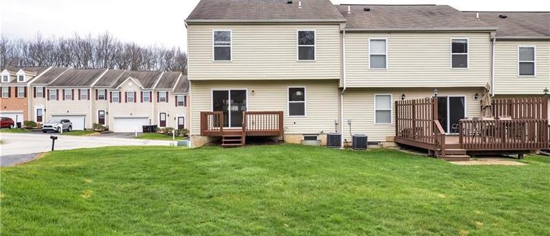 Fantastic Opportunity For Low-Maintenance Living in Whispering Springs Community, Franklin Regional School District! Tucked Away in a No-Outlet Neighborhood, Just Minutes to Routes 22 & 66, Shopping, and Restaurants, this Immaculate 3 Bedroom, 2.5 Bath, End Unit Townhome Offers Beautiful Hardwood Floors in the Entry and Open Living/Dining Room, Tile and Vinyl Tile in the Kitchen, Laundry and Baths, and BRAND NEW Carpet in the Upper Level Hallway and All 3 Bedrooms. The Main Level, Open Concept Living Room / Dining Room Features a Gas Corner Fireplace with Decorative Alcove and Slider to Rear Deck and Semi-Private, Level Yard Backing to Woods. The Home is Freshly Painted Throughout and Offers a Spacious, 27' 11" Deep Garage, Storage Area in the Basement, and Main Level Laundry Off the Kitchen with Maytag Bravos Quiet Series Washer & Dryer Included. The Kitchen Features a Pantry, New Frigidaire Stove with Steam Clean, a Newer Kitchenaid Dishwasher, Whirlpool Microwave, and Kenmore Side by Side Refrigerator with Ice and Water. A Convenient Half Bath with Updated Lighting Completes the Main Level. Upstairs is a Hallway Linen Closet and Full Bath with Tub/Shower Combo and Updated Vinyl Tile Flooring, and Three Spacious Bedrooms Including a Primary Suite with Walk in Closet, Updated Ceiling Fan, and an en Suite, Private Bath with Tub/Shower Combo. Enjoy the Private Neighborhood Playground Complete with Benches and Doggie Waste Stations with Bags to Keep the Neighborhood Pet Friendly and Clean. Newer 2 Year Old Furnace! With a LOW $110/month HOA Fee, This Wonderful, End Unit Townhome is Move in Ready and Waiting for It's New Owner!