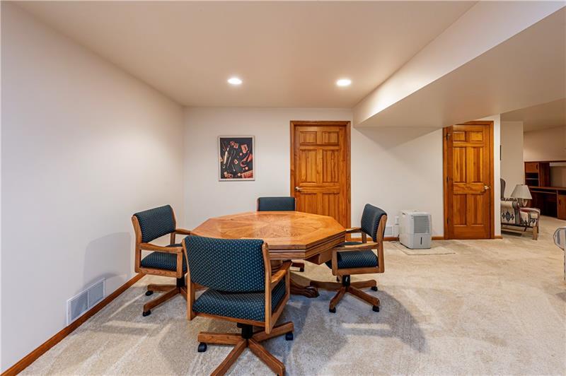 Gorgeous and Spacious Ranch home built by Shuster Homes on a corner lot in desirable location. Open floor plan features large foyer, vaulted family room, formal dining room, handsome kitchen with granite counters, laundry on first floor with exit to rear covered patio and somewhat private back yard. Three bedrooms including primary ensuite with soaking tub, half bath and full bath on main floor. Lower level features additional guest bedroom, full bath and large game room with wet bar. The other half of lower level is storage galore with exit to outside. The rear covered porch measures 30x17. The lower level that is finished measures 29x18 and 35x17 for family/game room.