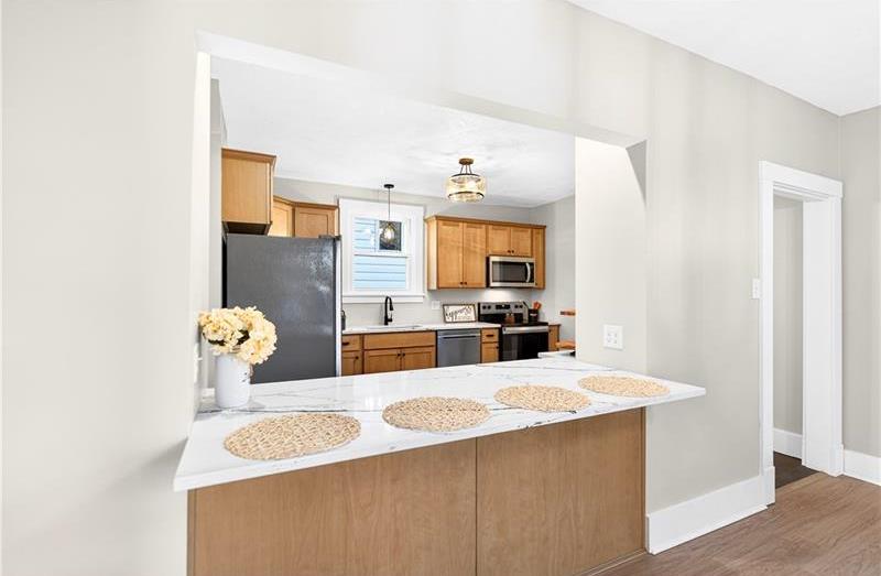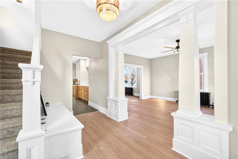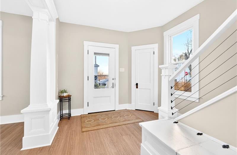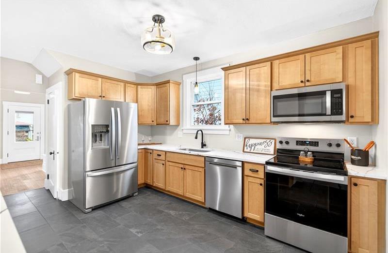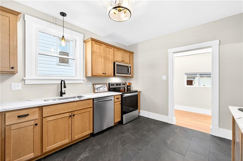 Fully updated & move-in ready, this 5 bedroom home is located in the desirable Southwest Greensburg neighborhood. The new kitchen is the heart of the home, featuring timeless wood cabinetry, stainless steel appliances, quartz countertops, & large island w seating for four, creating an open flow into the dining area. Main level showcases high ceilings, original detailed trimwork, and spacious living & dining rooms, Convenient mudroom & powder room addition are located just off the kitchen. Upstairs you'll find 5 bedrooms, including the option to convert one into a luxury walk-in closet if desired. Full bathroom has been updated w a new ceramic tub & shower surround. Additional major improvements include boiler, roof, plumbing, electrical, hot water tank, sidewalks, paint, floors, lighting.& more. Also a basement featuring a three-piece plumbing rough-in for a future bathroom. A detached one-car garage and a level backyard, perfect for outdoor enjoyment, pets, or entertaining.