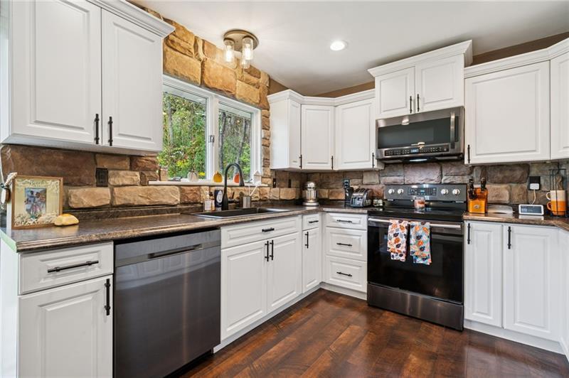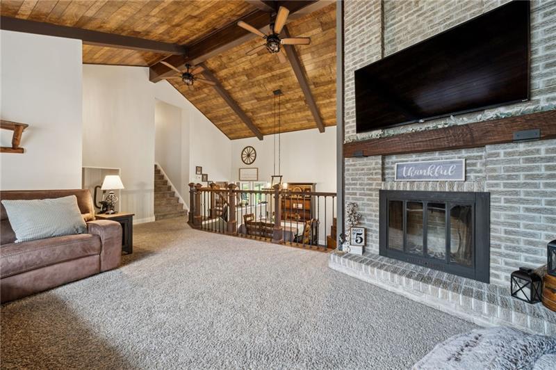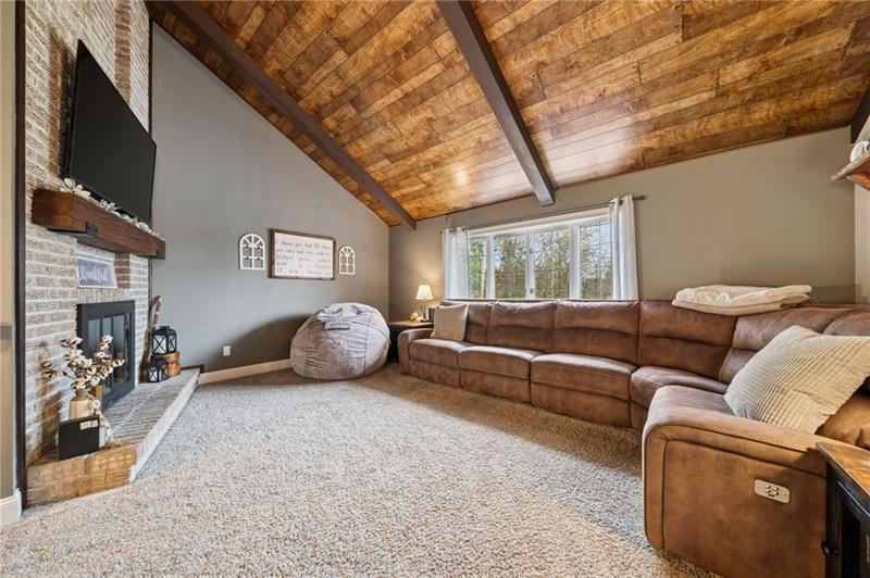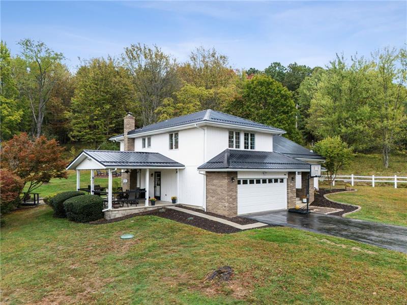 If you are looking for the true dream home- this is it! Step inside to a grand living room with soaring vaulted tongue-and-groove ceilings, exposed wood beams, and a stunning floor-to-ceiling brick fireplace that creates a warm yet dramatic centerpiece. Natural light pours through tons of windows, highlighting the home's open and inviting feel. The completely renovated white kitchen features a natural stone backsplash, modern finishes, and luxury vinyl flooring that flows seamlessly through the main living areas. This spacious home offers multiple gathering spaces, including a comfortable family room with its own fireplace, perfect for relaxing or entertaining. Ceiling fans throughout add comfort and efficiency. Retreat to the private master suite, complete with a walk-in closet, double bowl vanity, and a secluded veranda"”the perfect spot for your morning coffee or evening unwind. Outdoor living is just as impressive with a covered patio ideal for entertaining, a detached garage at the rear of the property, and plenty of room to enjoy the surrounding acre of land. Major updates include a new black metal roof, adding both style and durability. If you're looking for space, character, and modern updates with a peaceful setting, this property in Hempfield Township delivers.