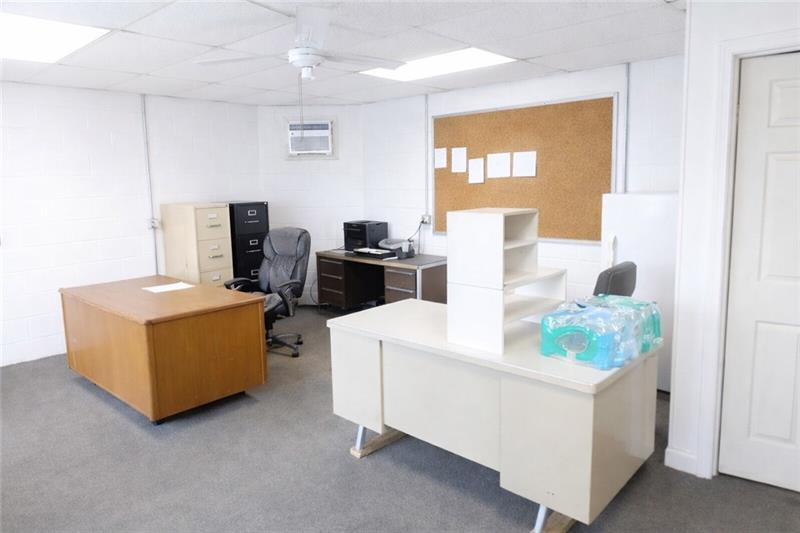 Solid two-story brick building featuring concrete floors on both levels. The first floor offers two half baths, a large office area, and an expansive warehouse/manufacturing space. The upper level is currently partitioned into multiple rooms and can be reconfigured or opened to suit a variety of uses; this level also includes two half baths. Each floor is equipped with a 10' overhead door. Property features 400-amp, 3-phase power and a newer rubber roof. Adjacent lot provides excellent potential for expansion or additional parking.