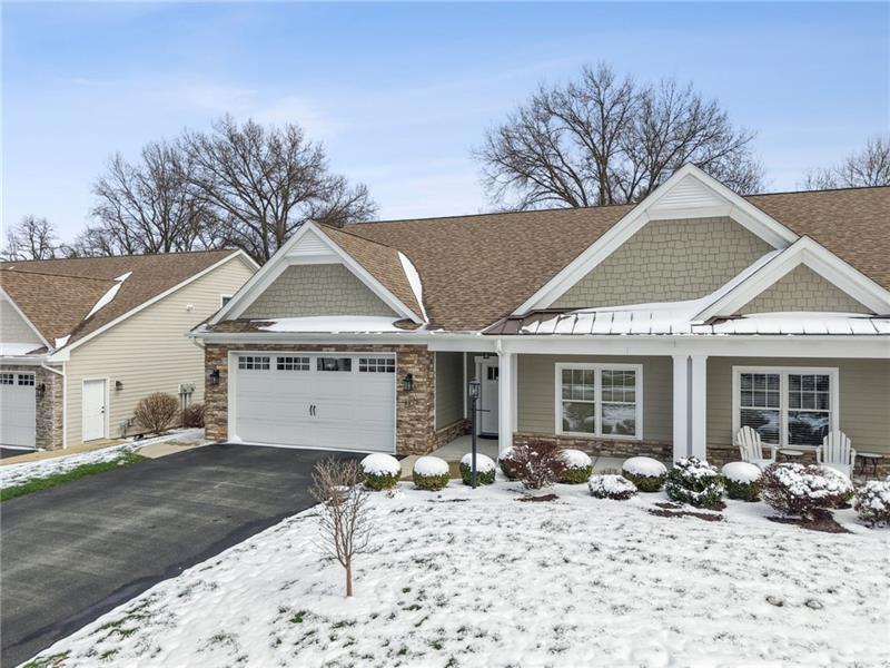 Attention to detail defines this luxurious 3-bedroom, 3 bath paired villa offering effortless one-floor living with a bright, open floor plan in the desirable Fairfield neighborhood of Hempfield Township. Extensively upgraded throughout, the home features gorgeous hardwood floors flowing seamlessly across the main living space. The chef's kitchen is a true centerpiece, boasting a massive island with seating, granite countertops, stainless steel appliances, a generous pantry, wet bar, and beverage cooler"”perfect for entertaining. The inviting living room is anchored by a stunning stone fireplace, creating a warm and cozy atmosphere. The spacious primary suite offers a spa-like bath with a walk-in shower and a large walk-in closet complete with a custom organization system. A private second-floor guest bedroom and full bath provide ideal accommodations for visitors. Flat screen TVs and electronics on both levels are included for added convenience. The attached two-car garage is outfitted with custom cabinetry, a workbench, and a durable Beautystone-style floor. Outdoor living is equally impressive with both a covered patio and sun patio overlooking a private backyard setting.