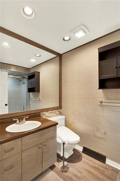 Discover this stylish split-entry home in the coveted Country Club Meadows, offering 3 bedrooms and 2.5 baths with an open, airy vibe thanks to the dramatic frame/vaulted ceiling. The spacious main level features warm natural light, a sleek updated kitchen, and an expansive living area centered around a striking fireplace. The finished lower level is an entertainer's dream"”complete with a full bar, second fireplace, and generous lounge space. Step outside to a private, resort-style deck with covered seating"”perfect for relaxing or hosting. With great curb appeal, modern updates, and a prime location minutes from schools, shopping, and route 30 access, this home blends comfort, style, and convenience in one exceptional package.