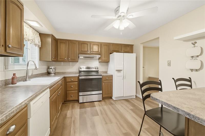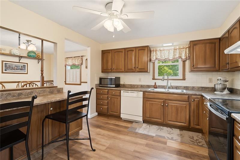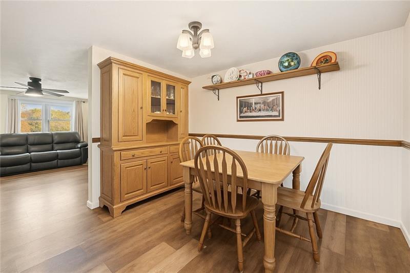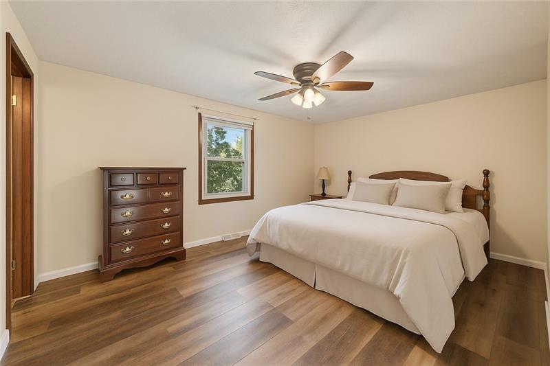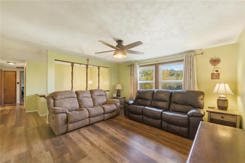 Welcome to this beautifully maintained split-entry home with an incredible backyard oasis! Enjoy two inviting decks"”one covered for relaxing year-round and one open for sunny days"”overlooking a fenced yard with a reflection pond, garden, and lush landscaping. Inside, the home features luxury vinyl wood flooring throughout and a spacious, light-filled layout. The finished lower-level game room offers a cozy wood burner and built-in shelving, perfect for entertaining or quiet evenings. A large garage provides ample storage and workspace. This home perfectly blends comfort, charm, and outdoor living!