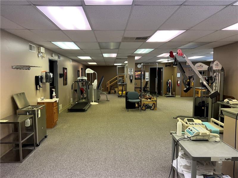 Former OSTPA rehabilitation space. Flexible floor plan offers large, central open area and private offices, a kitchenette and 2 full bathrooms. Entry reception desks and a large storage room with double doors for level deliveries.